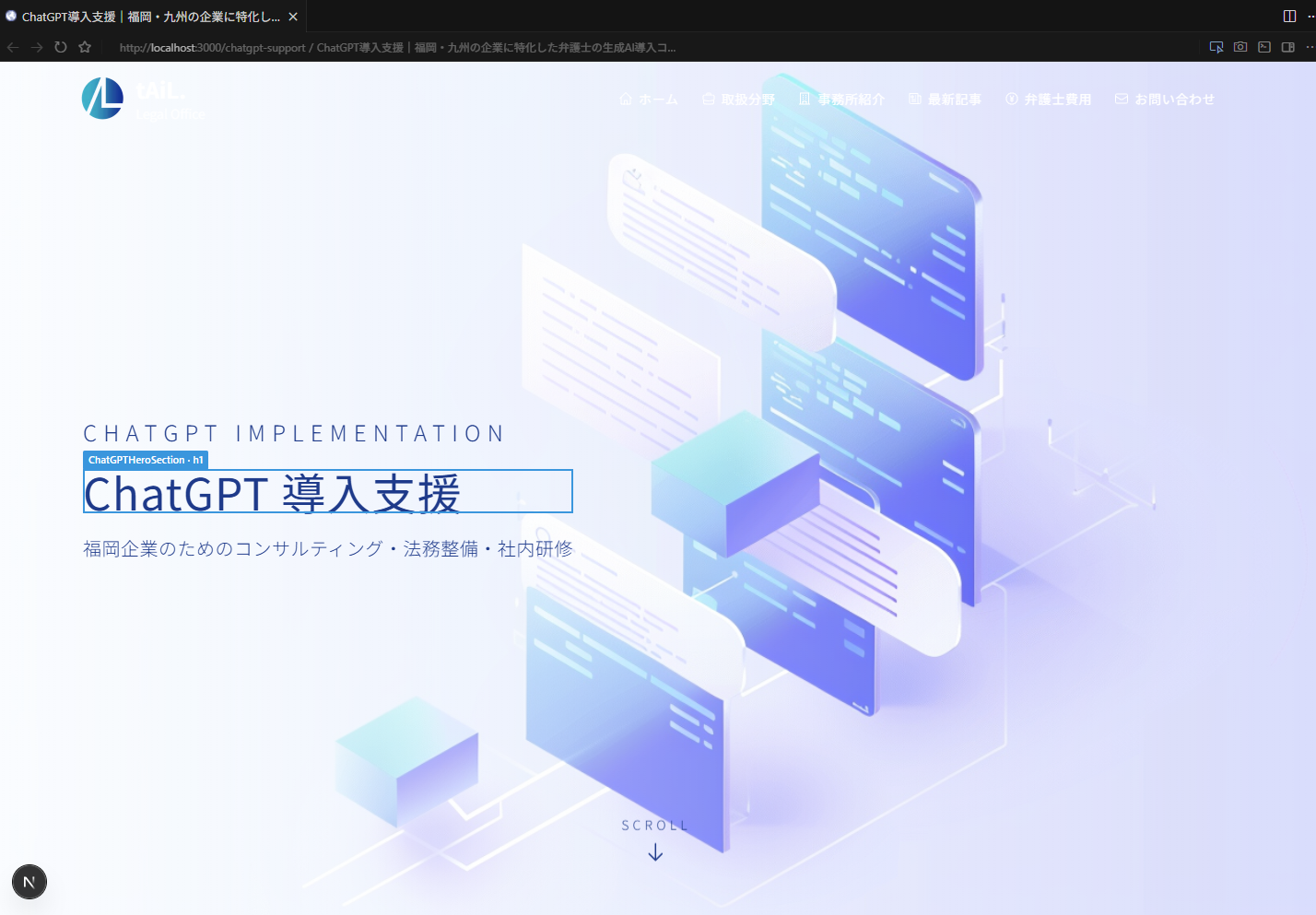 この課題は法律事務所に限った話ではないと思います。特に中小企業では、ホームページが何年も更新されていなかったり、そもそもWebサイトを持っていなかったりするケースも珍しくありません。理由はさまざまでしょうが、今この生成AIの時代に、そうしたハードルはかなり下がっています。Webサイトの運用に課題を感じている企業があれば、ChatGPTなどの生成AIを導入して解決に取り組んでみるのも一つの手段ではないでしょうか。